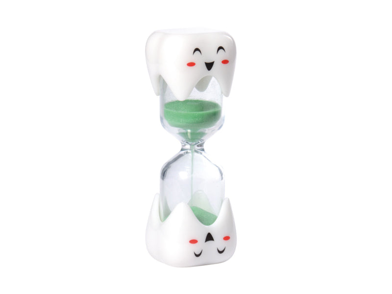 Met de tandenborsteltimer in tandontwerp is tandenpoetsen leuker, want boven, onder, binnen, buiten, voor, achter... en een grondige reiniging van de kauwoppervlakken kost tijd. De klok geeft 2 minuten aan en helpt kinderen om een gevoel van de juiste hoeveelheid tijd te ontwikkelen.
