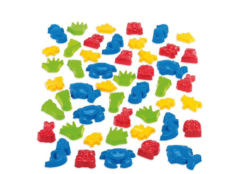 Kleurrijke handen, voeten, voertuigen, boerderij- en zeedieren... Elk kind vindt zeker zijn favoriete motief om het zand in vorm te brengen.