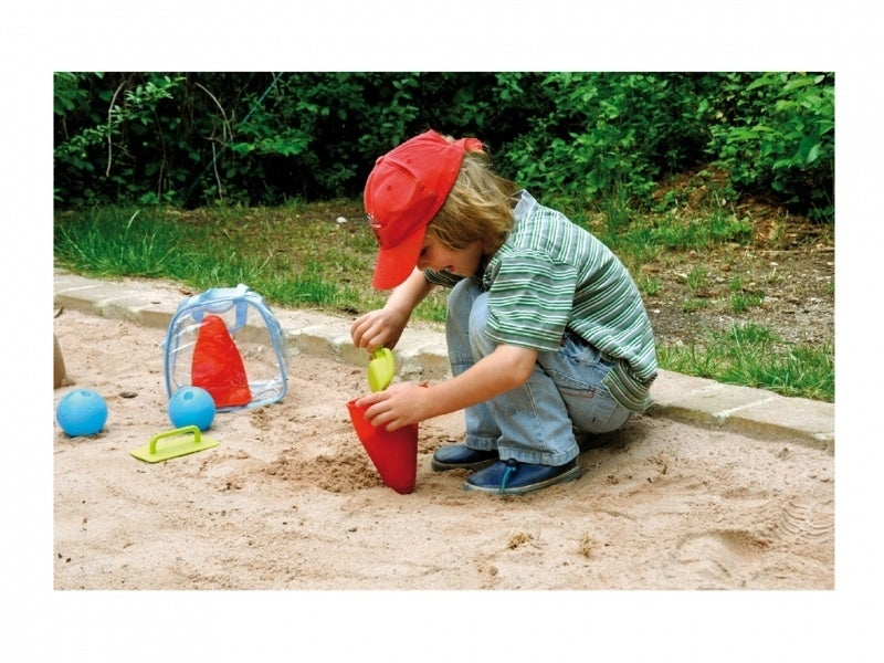 Met de schep en de vorm kunnen mooie kegels gemaakt worden en met de troffel kan het mooi afgewerkt worden.