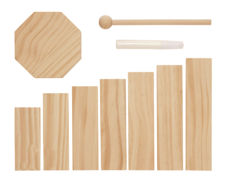 De klankstaven kunnen met de bijgeleverde houtlijm aan de bodem bevestigd worden.