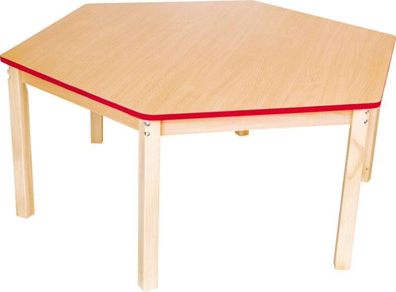 Zeshoekig esdoorn tafelblad met kleurrijke rand rood