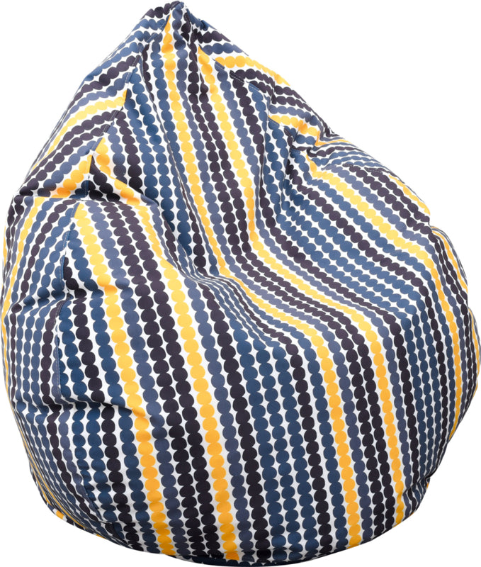 Keuze uit een zitzak met motieven van driehoeken, cirkels of pijlen, bedekt met velours stof.