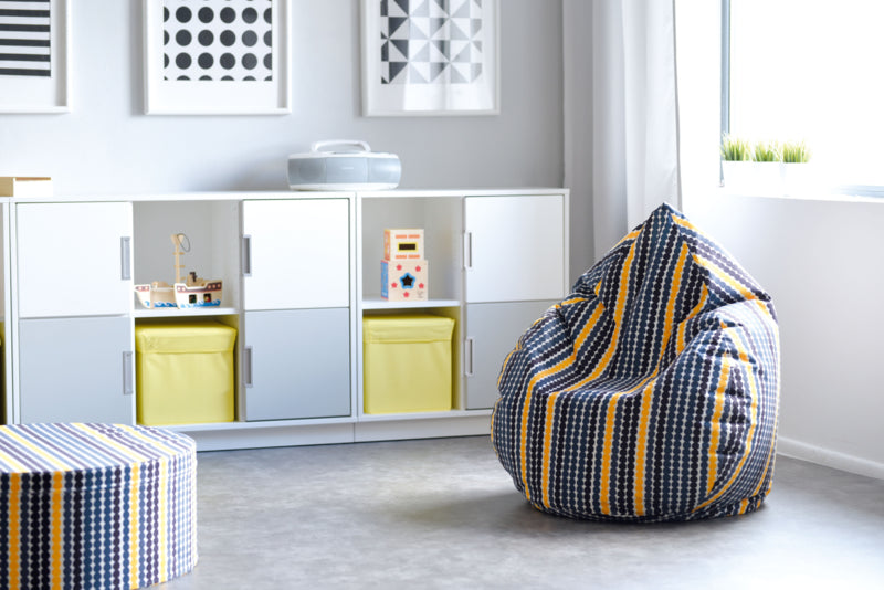 Zachte, comfortabele zitzak gevuld met piepschuimkorrels die zich aan passen bij de vorm van het kind.